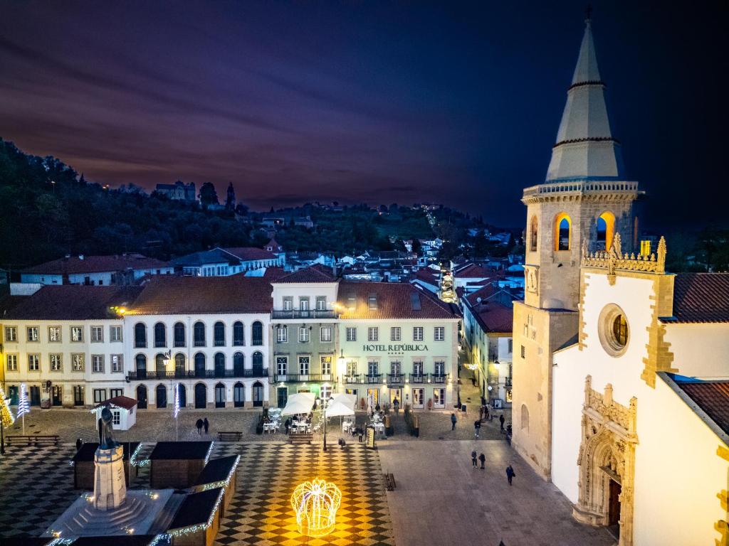 In the very heart of Tomar’s historic square, Hotel República places you within the pulse of the town — where church bells echo and stone façades glow in evening light.